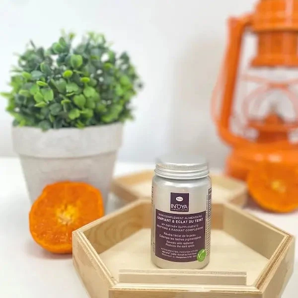 Formulé spécifiquement pour les peaux pigmentées Mon Complément Alimentaire Unifiant & Éclat du Teint d’IN’OYA agit de l’intérieur pour révéler durablement l’éclat du teint en 4 étapes: