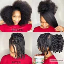 Elle limite le phénomène du shrinkage, assure une élongation temporaire de votre afro ou de twist out et braid out.