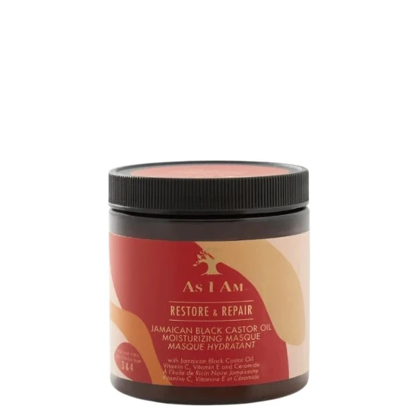 Le As I Am JBCO Masque allie l’huile de carapate aux vitamines C et E pour des cheveux forts et brillants.