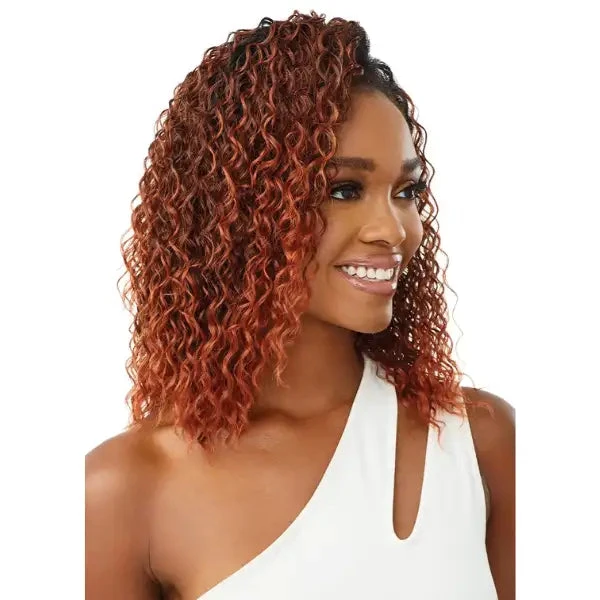 Adoptez un tout nouveau style en quelques minutes seulement avec cette perruque demi-tête mi-longue et bouclée Deep Curl 14″ de la collection Quick Weave Outré Hair.