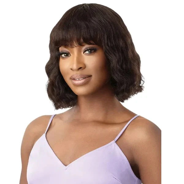 Adoptez une coupe courte au carré à frange avec la perruque Asami de la collection Mytresses Purple Label Outré Hair.