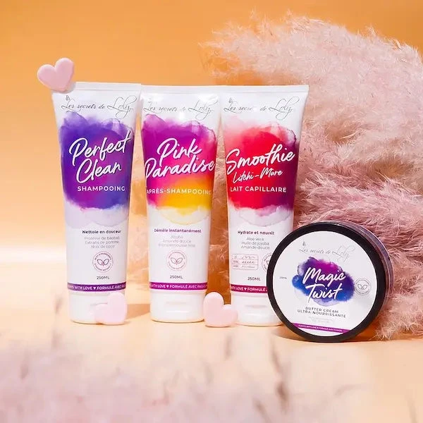 - Étape 4 : la Crème Magic Twist – 250ml : La dernière touche : ce beurre capillaire nourrit en profondeur vos cheveux et scelle la définition pour la semaine. L’hydratation est conservée plus longtemps au sein du cheveu pour des boucles souples et brillantes !