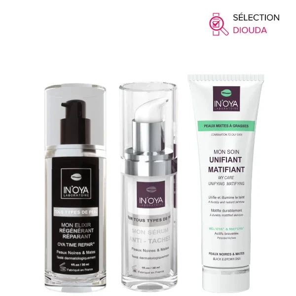 Ce pack regroupe les 3 technologies brevetés par IN’OYA spécialement étudiés pour les peaux noires et mates :