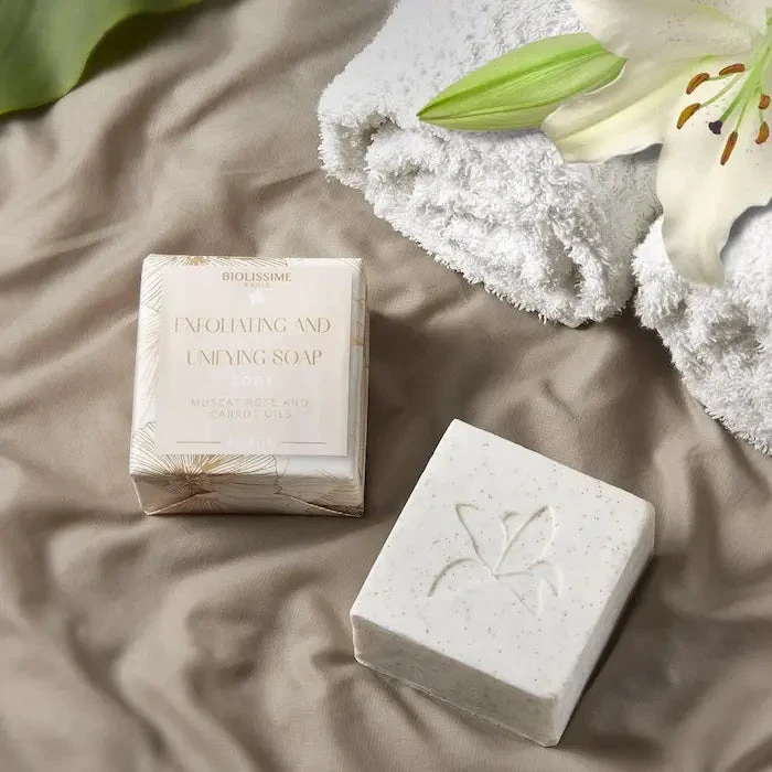 Le Savon Exfoliant Unifiant Biolissime laisse la peau plus lisse, plus douce, le teint plus uniforme, GLOWY. Affiné, l’épiderme est prêt à recevoir tous les bienfaits du lait corporel.