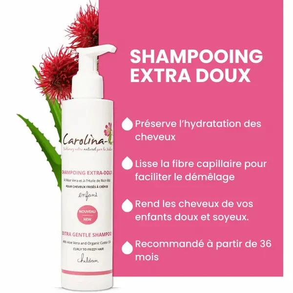 Le Shampoing Extra-Doux Carolina-B utilise une base lavante extra-douce, sans sulfates agressifs.
