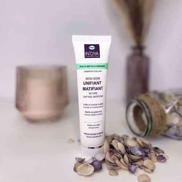 Convient bien aux peaux pigmentées mixtes à grasses. Le Soin Unifiant Matifiant bénéficie d’une double technologie brevetée: